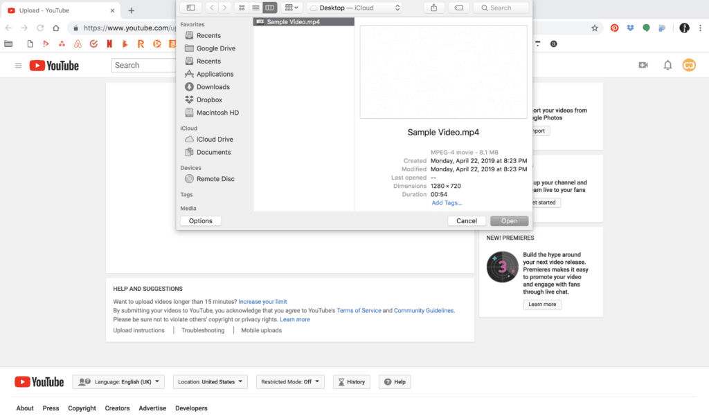 Khi bạn đang ở trong trình Quản lý video, chọn nút “Tải Video lên” để bắt đầu và tìm tệp video bạn muốn tải lên.